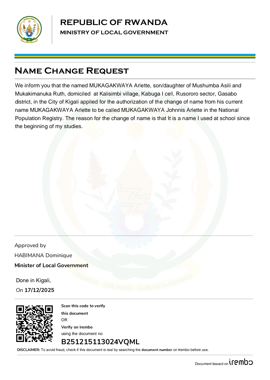 Uncategorized Itangazo ryo guhinduza amazina By Samuel MUTUNGIREHE - December 19, 2025 0 34 Facebook Twitter Google+ Pinterest WhatsApp